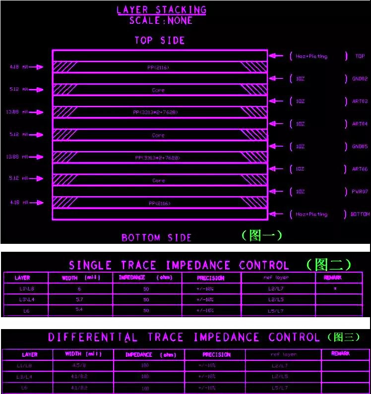 1. The PCB circuit board needs to be a signal line with impedance, which should be set strictly according to the line width and line spacing calculated by the stack. Such as radio frequency signal ((conventional 50R control), important single-ended 50R, differential 90R, differential 100R and other signal lines, the specific line width and line spacing can be calculated through lamination (as shown in the figure below).