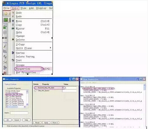 1. First select the back drill Net and define the length. Click Edit-Properties in the menu bar to open the Editproperty dialog box, as shown below: