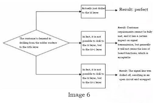Due to the certain tolerance control requirements of the drilling depth and the thickness tolerance of the plate, we cannot 100% meet the customer's absolute depth requirements, so is it better to control the depth of the back drilling? Deeper or shallower? Our view on the process It is better to be shallow than to be deep, Figure 6.